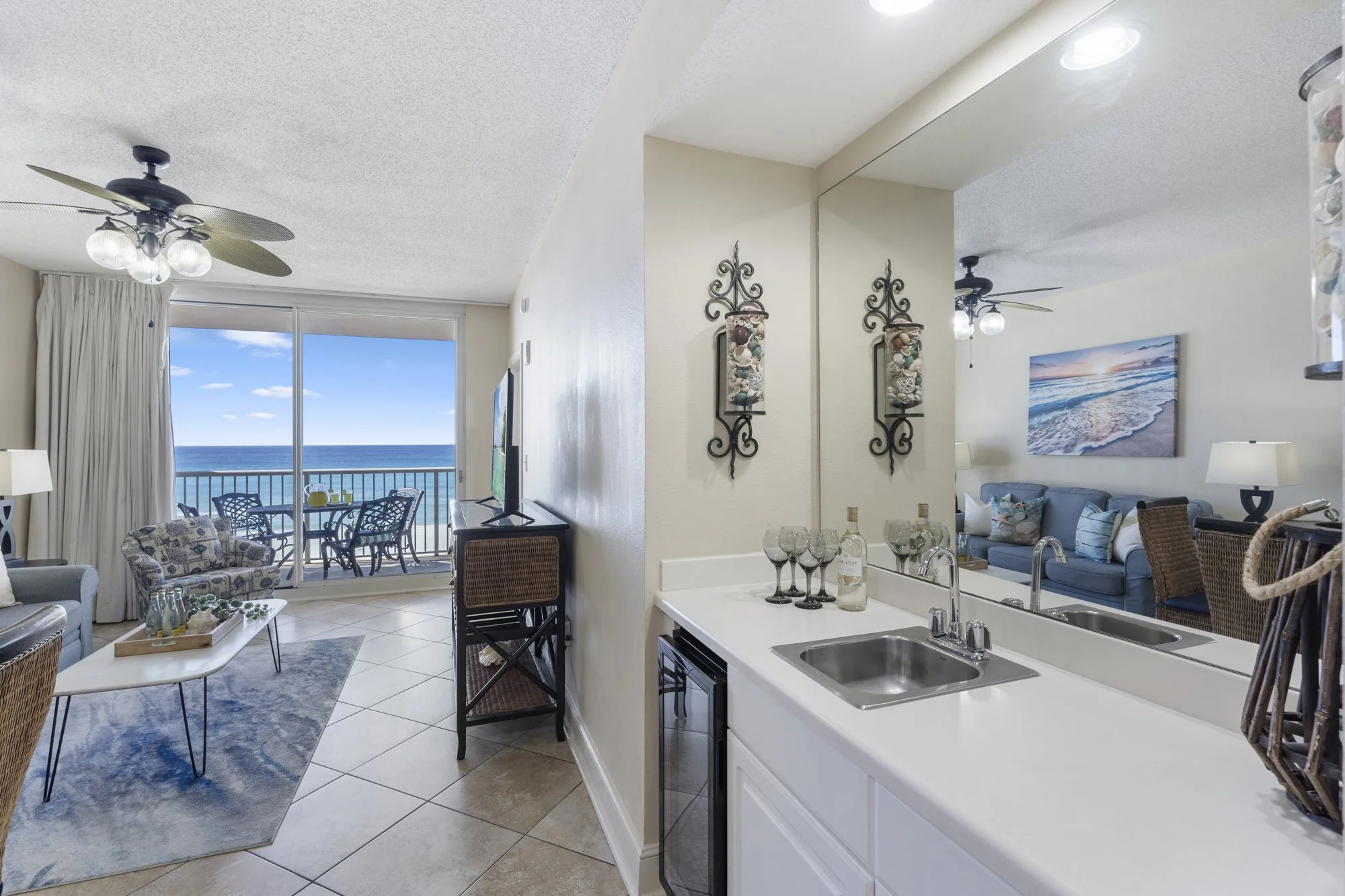 → Spacious Living Area: Features comfortable seating and fantastic Gulf views.