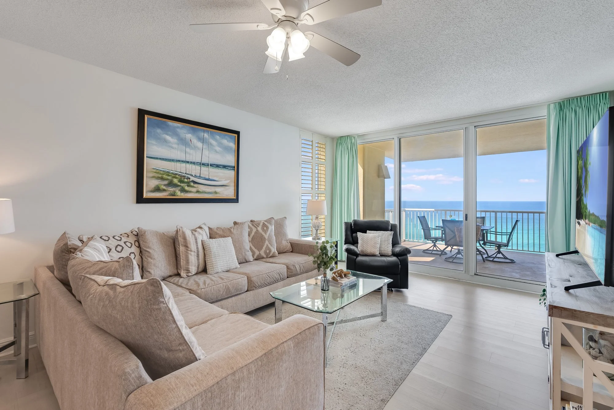→ Spacious Living Area: Features comfortable seating and fantastic Gulf views.