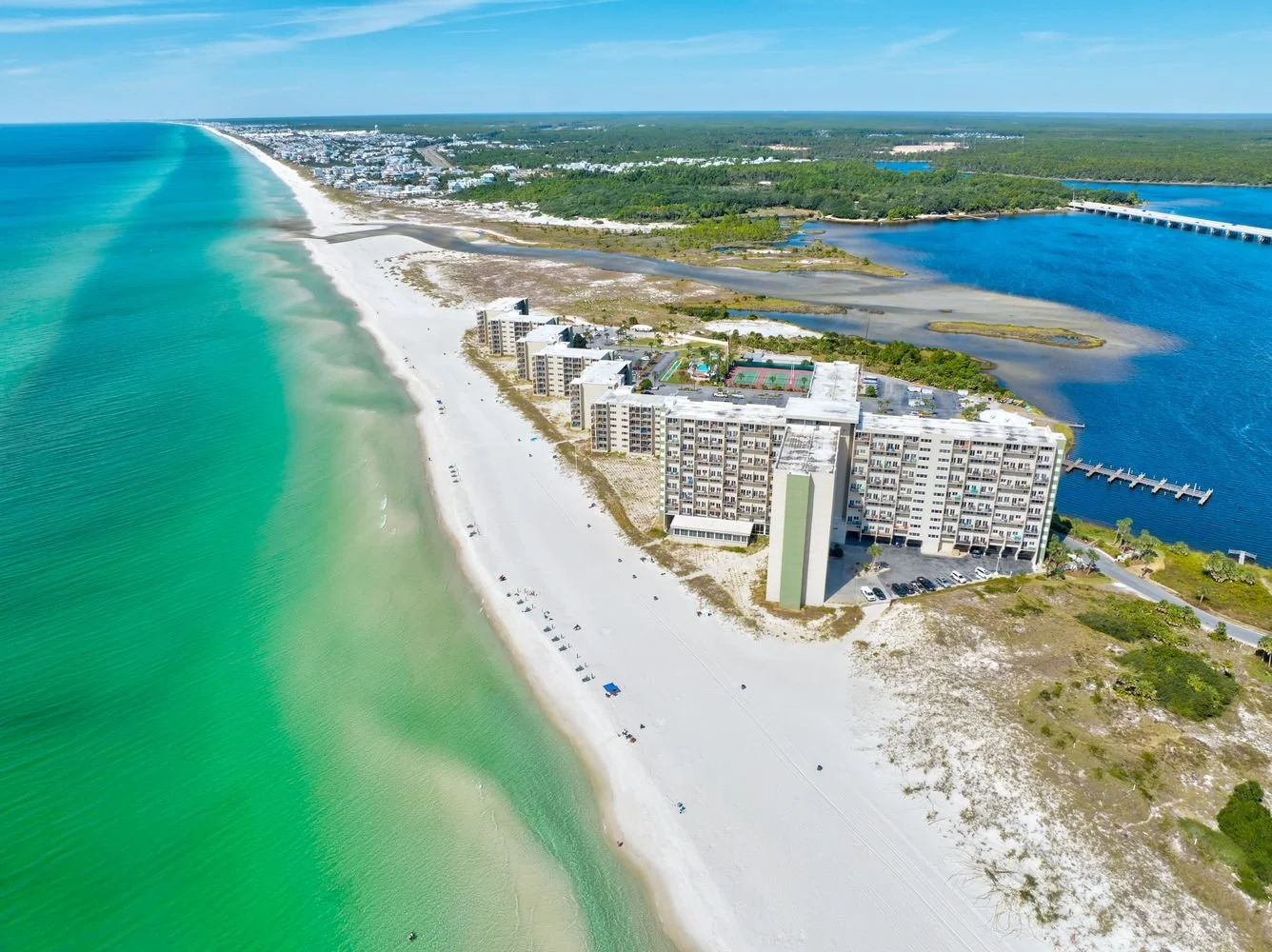 Wake up to stunning ocean views from your bedroom and balcony! This beautiful 2-bed / 2.5-bath condo in Pinnacle Port is the perfect retreat, comfortably sleeping up to 4 guests. Just minutes from 30A, this spacious unit offers a fully equipped kitchen, a cozy living area, and everything you need for a great stay. Pinnacle Port is only 3 miles from some of the most iconic beach towns in 30A, like Rosemary Beach, Inlet Beach, and Seaside.